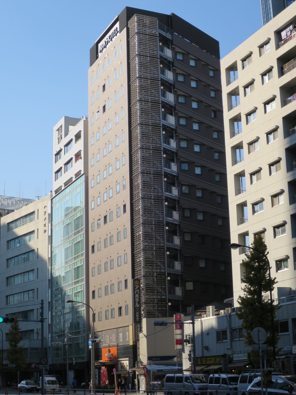 最寄駅は三田駅だが山手線の田町駅にも5分程度でアクセスできるので便利です。ホテルの作りは都内の各所にあるアポアホテルと同様ですが、ここの利点は交差点の角地に立つので眺望のある部屋数が圧倒的に多いことです。都会のパノラマを望むことはできませんが隣のビルの壁面を眺めるだけよりはマシです。それだけでもアパを利用するならここを選択するのがいいかも。