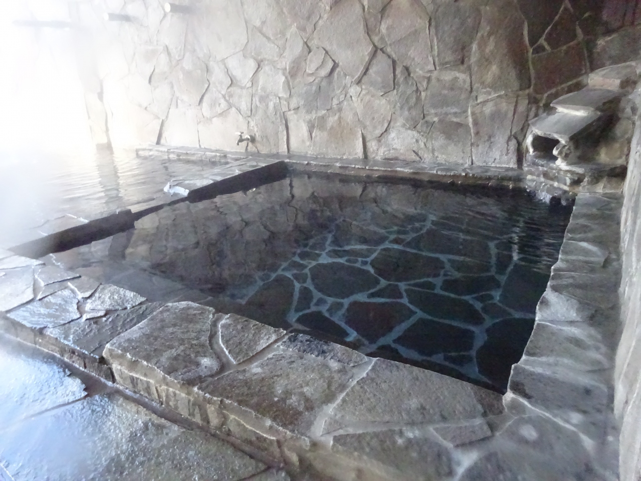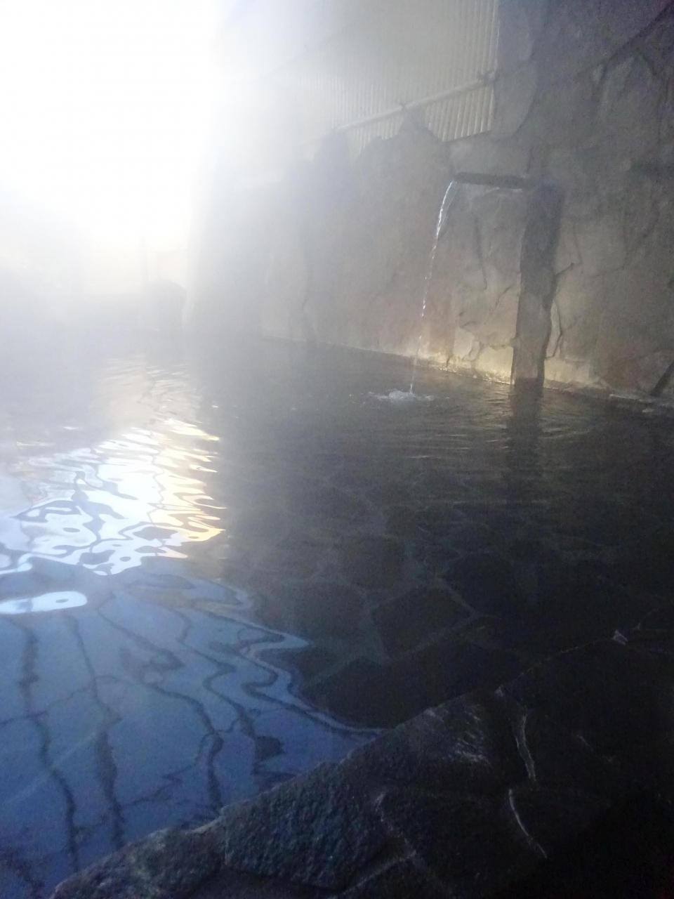 目当てのお風呂は、大浴場にぬるめ(大)と熱め(小)の2槽があります。植木温泉のトロトロのアルカリ性硫黄泉です。大浴場は寒いからか戸が締め切ってあって湯気がこもっていました。ぬるめの方は冬だとちょっとぬるすぎかなと。熱めの方に何度も入りました。シャワーもトロトロで温泉が出ているそうです。肌がツルツルになりました。