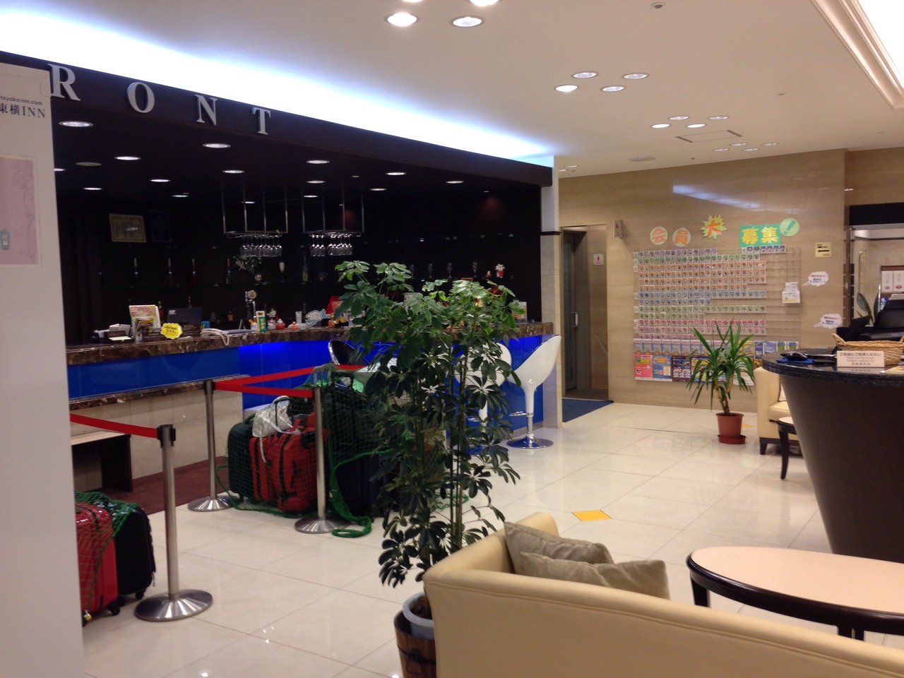東横インというと、どこでも同じようなフロントにお部屋ですが、ここはそれと違いますよ。大浴場が一階にあることと、部屋の並びがワンルームマンション風になっている上、お部屋の中に小さな調理場があります。また、ダブルベッドも広かったことや、テレビも壁掛けでした。