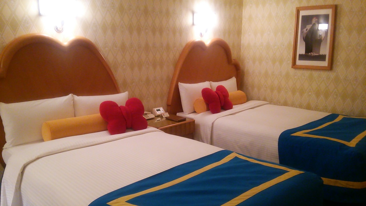 お値段高いですねー。でもかわいいです。アメニティもかわいい。部屋のテレビでディズニー作品が見れます。(ゆっくり見る時間はないけど)スタッフの対応は基本的には良いと思います。ホテル内にお土産屋さんがあるので、事前に買っておけばランドでのお土産ラッシュに会わずに済みますよ。