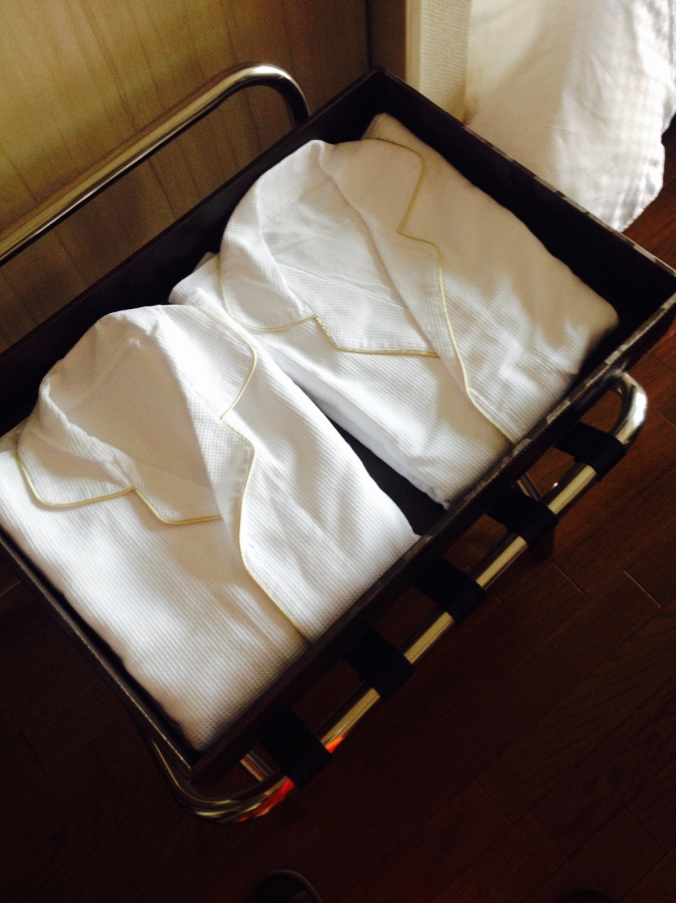 フロントからエレベーターに乗る際にタオルなどのお風呂セットがありますので、必要分いただきます。
