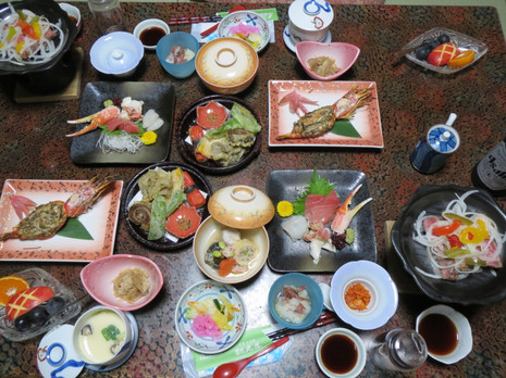 夕食時間は18時30分をリクエスト。時間前にお膳を部屋に運んでくれます。