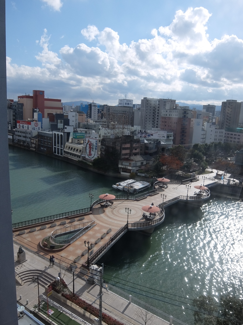 中州川端駅から徒歩数分で、コンビニも数件徒歩圏内にあります。中州の屋台街や天神方面も歩いてすぐなので、とにかく動きやすくて便利でした。
