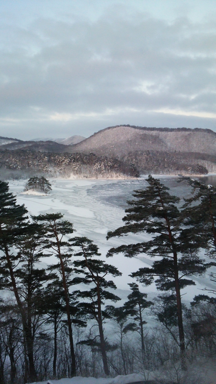 - 景色のよい露天風呂。女湯は林の中で湖はよく見えないみたい。