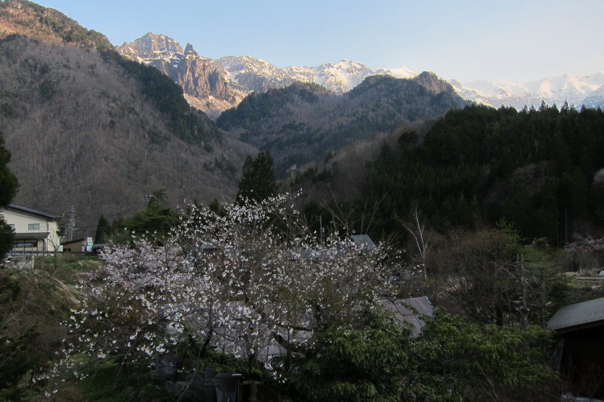 部屋の窓からの景色は素晴らしい。正面の山は迫力あり。