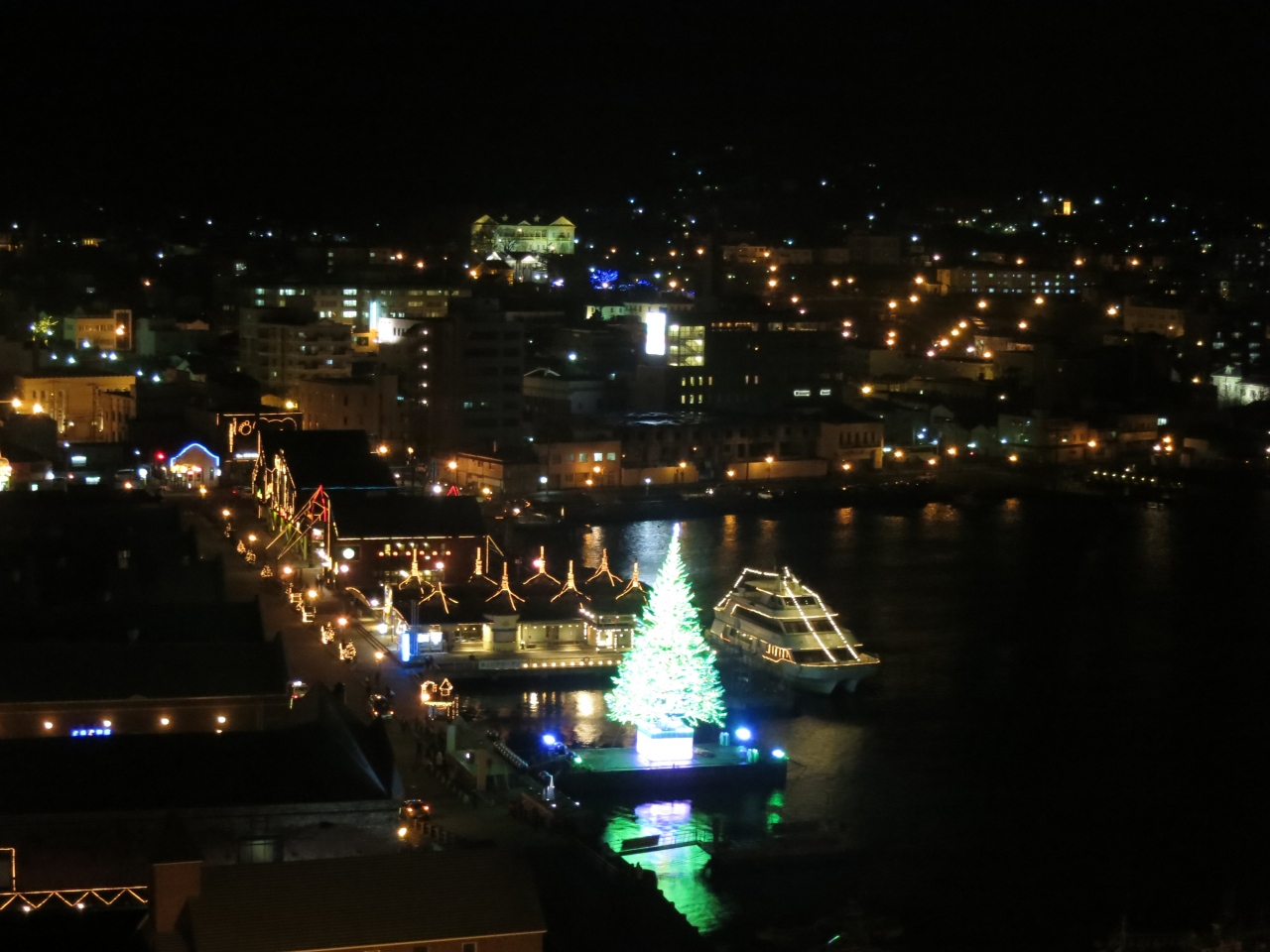 ちょうどクリスマス時期にあたったので部屋からクリスマスツリーを見ることができました。部屋は低層でしたが、高層階の大浴場横の湯上り処からの夜景は見事でした。