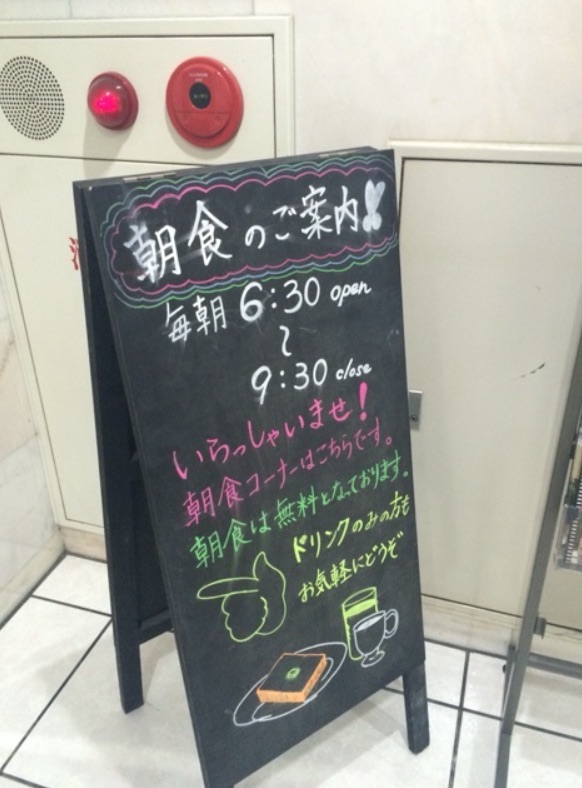 夜中の1時まで使えて、あと朝も朝食サービス中も使えます。