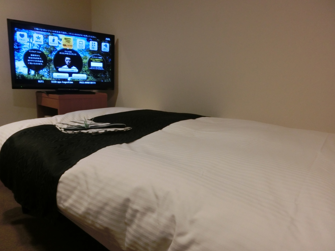 部屋はやや狭い感じですが清潔で、テレビは一泊では使いこなせないほど多機能で大型です。ただ、部屋のデスクがテレビとは逆方向の壁向きで、私のように、テレビを見ながら一杯飲むことを楽しみにしている者には不便でした。(他の部屋がどの様な配置になっているのかはわかりませんが) 翌朝早く、4時30分に出発でしたが、カードキーを返却ポストに投入してチェックアウトというシステムでした。