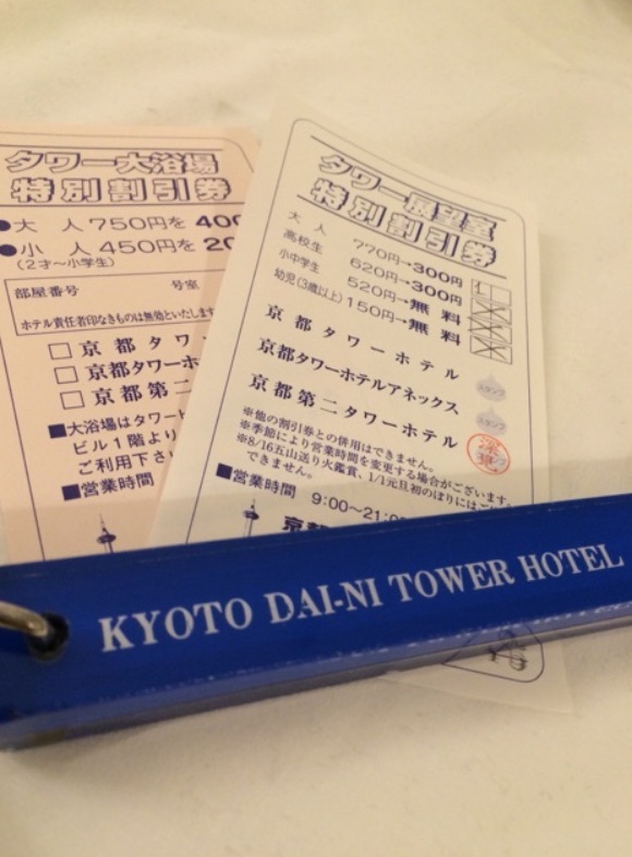 ちなみに部屋着は浴衣で、京都タワーのキャラが印刷されててなんか可愛かったです。