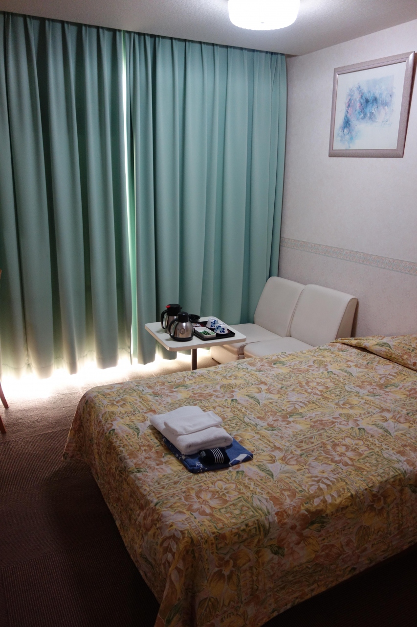稲佐山方面が見渡せる景色のよい部屋は、ゆったり目の広さ。でも水回りはリノベーションしてほしいなぁ・・・お風呂は大浴場の利用をお勧めします。ただし、本館は露天も含め2つ浴場がありますが、どちらも小さいので、特に夜景ツアーが帰ってきた後の時間帯は混みます。南館の大浴場の方がまだ大きそう。