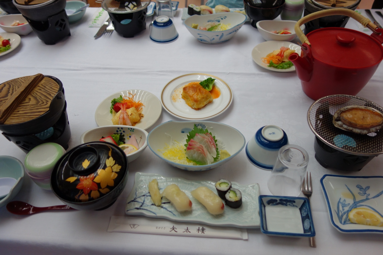 夕食はツアーに付いているホテルの食事で、バイキングではない形式で卓袱料理的なものをいただきました。不味くはないけどほめるほどでもない味でしたがバラエティ豊かでお腹いっぱい。アワビの踊り焼き?がインパクトがありました。(個人的には、プロにいいころ合いで焼いたものを出してもらいたいですが・・・)