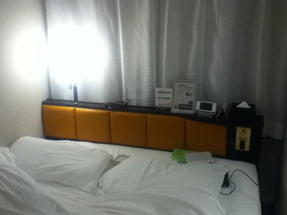 広さは写真を参照いただくと分かりますが、中心部をベッドが占めて周辺部に余裕は余りありません。
