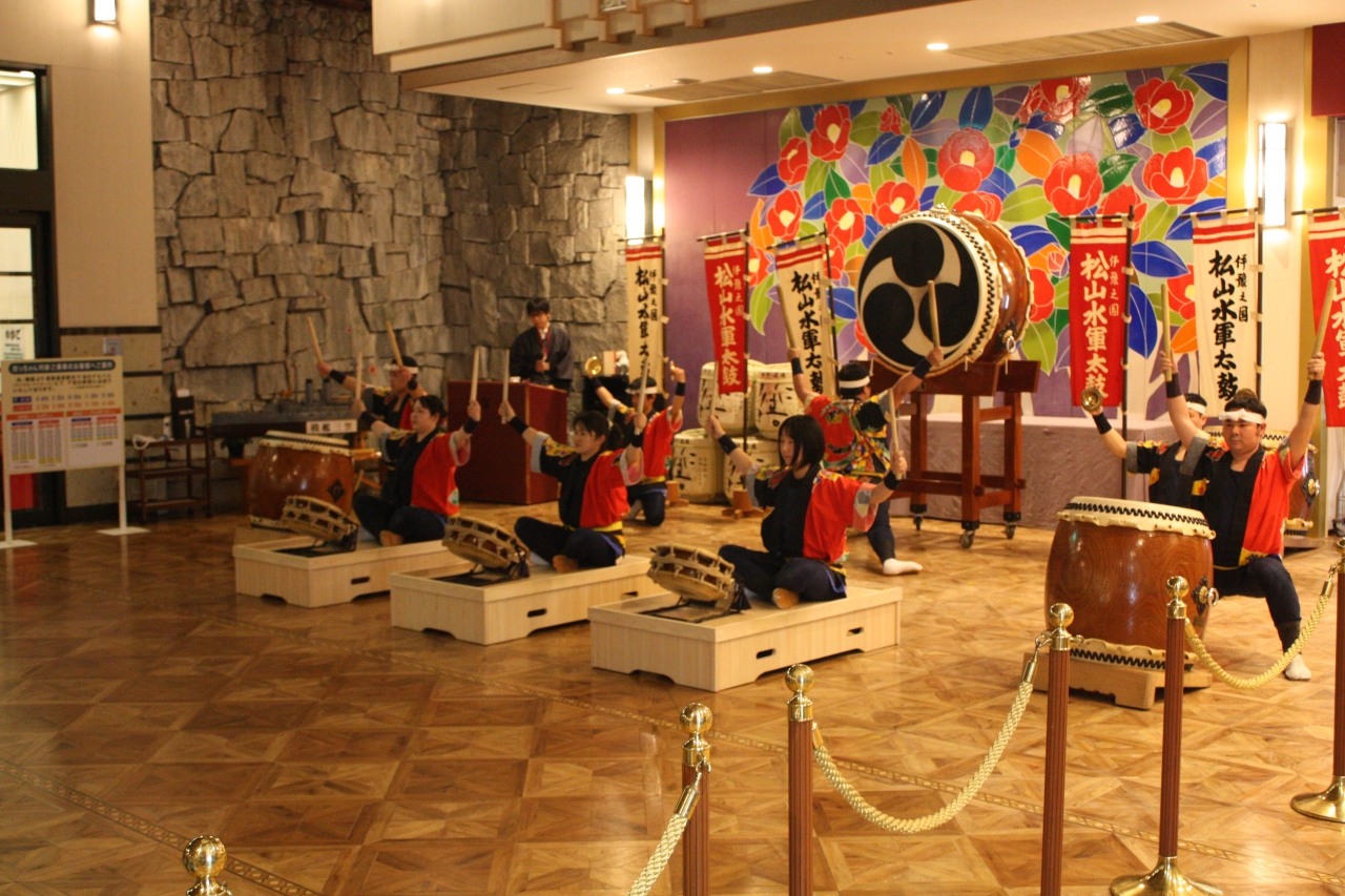 夜9時からは水軍太鼓のパフォーマンスを見ました(30分)。中盤にかけてぐっと盛り上がりました。毎晩やっているので、お風呂上がりに見てみては?