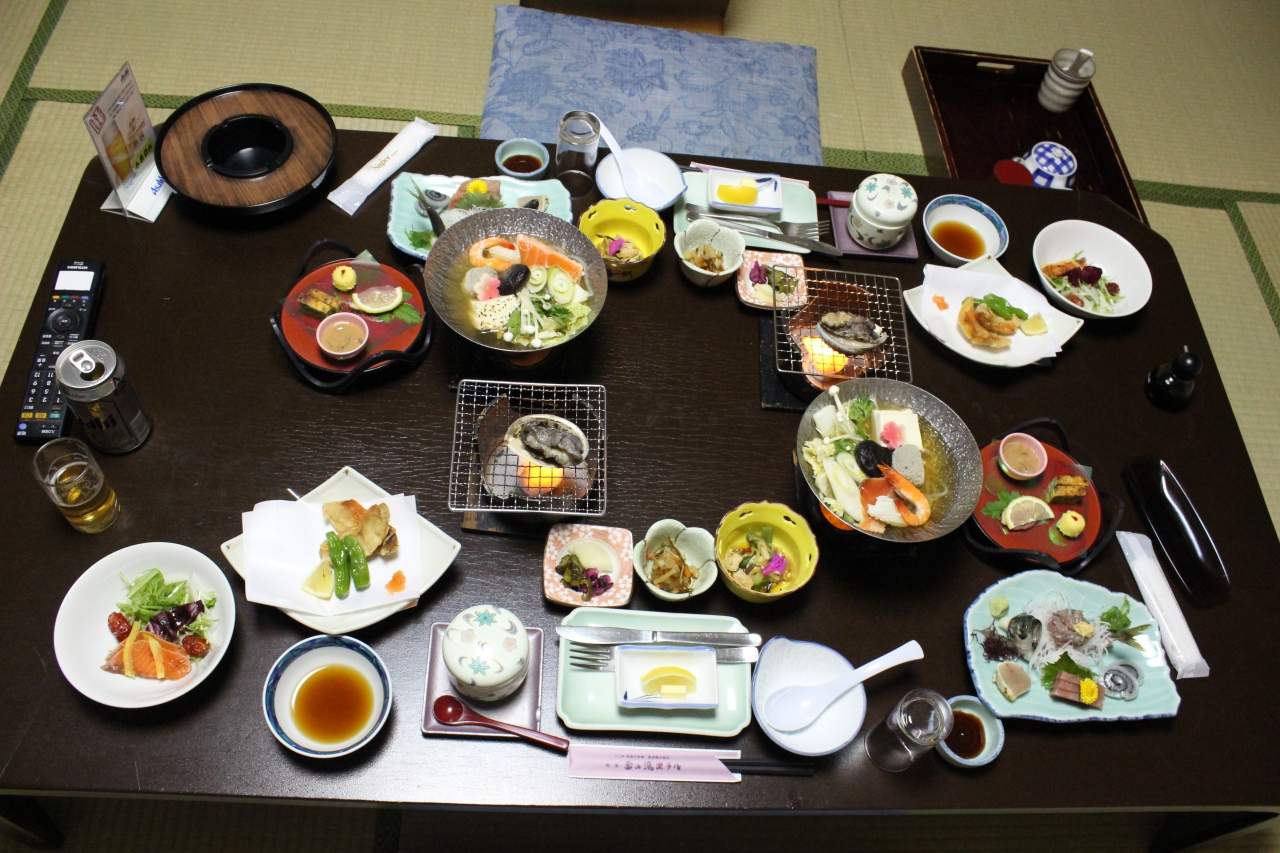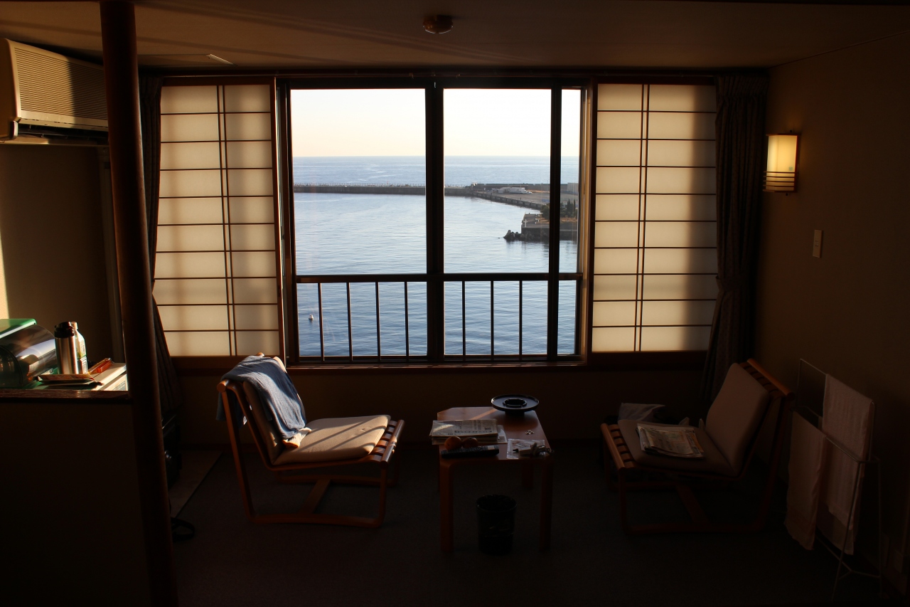 オーシャンビューで、朝夕部屋食、窓は二重窓で外の騒音は全く聞こえません。