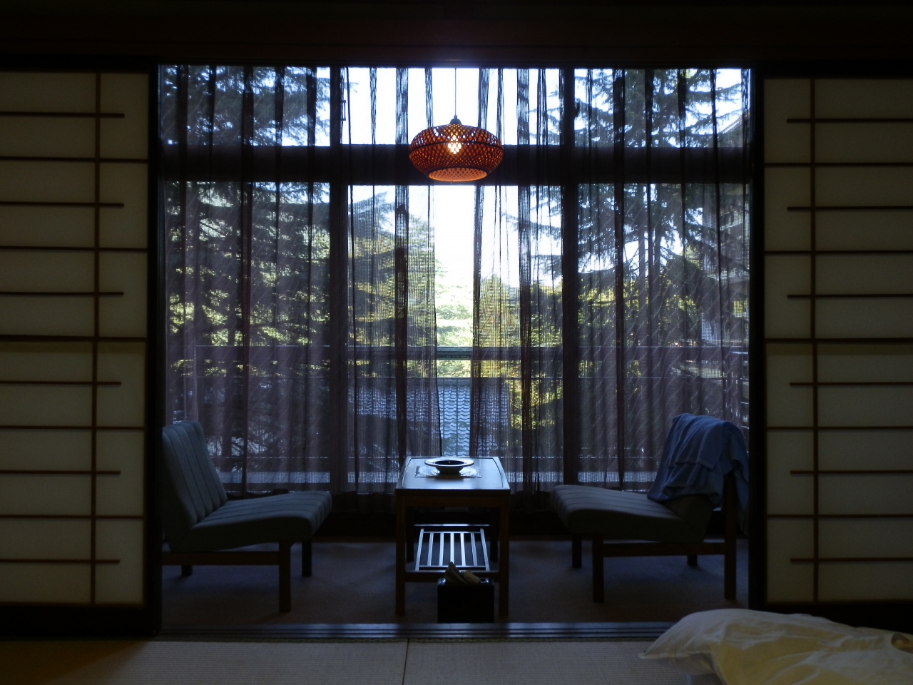 本館の和室で狭い感じの部屋だった。部屋の中は古風で古かった。すぐ浴衣に着替え、大浴場に行った。そんな広くは感じず、暗い感じがした。少し浸かって、露天風呂に入った。小さい湯船だった。廻りを囲ってあって風情がない。「宇奈月グランドホテル」宿泊と聞いて楽しみにしていたが、それほどでもなかった。