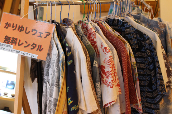フロントにレンタルのかりゆしウェアがあり、着てみたら快適さに虜になり全く興味がなかったのにお土産に買ってしまいました。