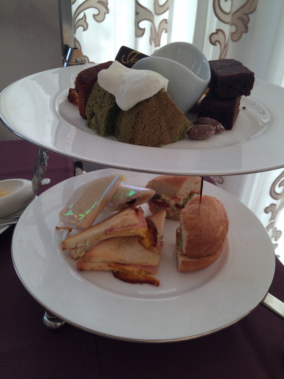 アフタヌーンティーは、紅茶もスイーツもおかわり自由の2時間制でした。紅茶は5種類あり、どれも美味しかったですし、ホットサンドやポテトといった食事メニューとマカロンやスコーンのスイーツメニューのバランスがよく、お腹いっぱいいただけました。せっかく10階という高層階でお茶しているのに、日中は、陽の光が強くカーテンが閉まったままなのが残念でしたね。