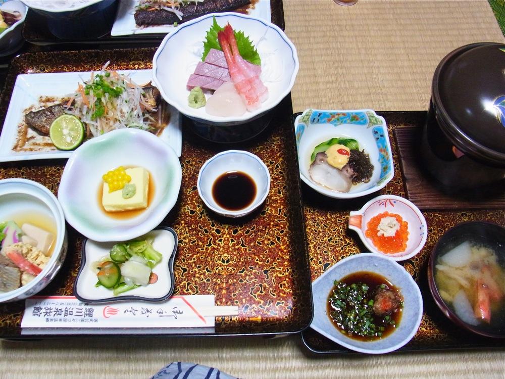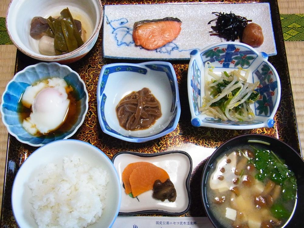 食事が何気にけっこう豪華で食べきれないほど。地元産・蘭越米のごはんも美味です。