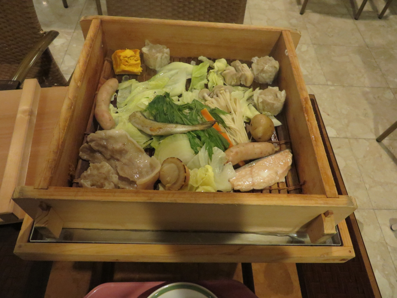 夕食はハーフバイキングのせいろ蒸しで、ホタテ焼きは食べ放題。朝食もバイキング形式で、やはりホタテは出てきます。せいろ蒸し、北海道っぽくて良かったです。