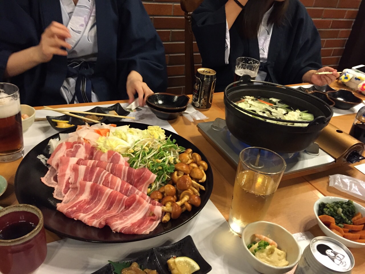 夕食はしゃぶしゃぶでした。美味しかったです。飲み放題プランがついているので、沢山お酒を飲むことが出来ます。頼めば熱燗も用意してくれます。