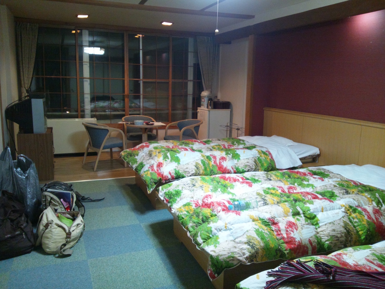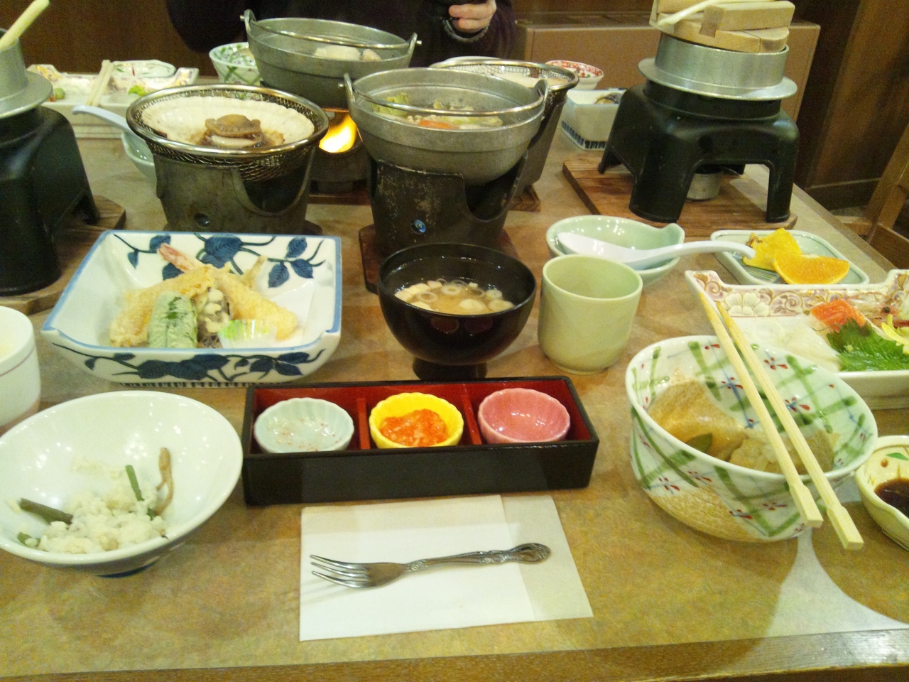 朝食はビュッフェでしたが、夕食は最近手頃なホテルに多いビュッフェ形式ではなく、昔ながらの旅館にあるような食事でした。夕食の内容は贅沢ではありませんでしたが外国人の彼にとってはそれが新鮮でよかったようです。