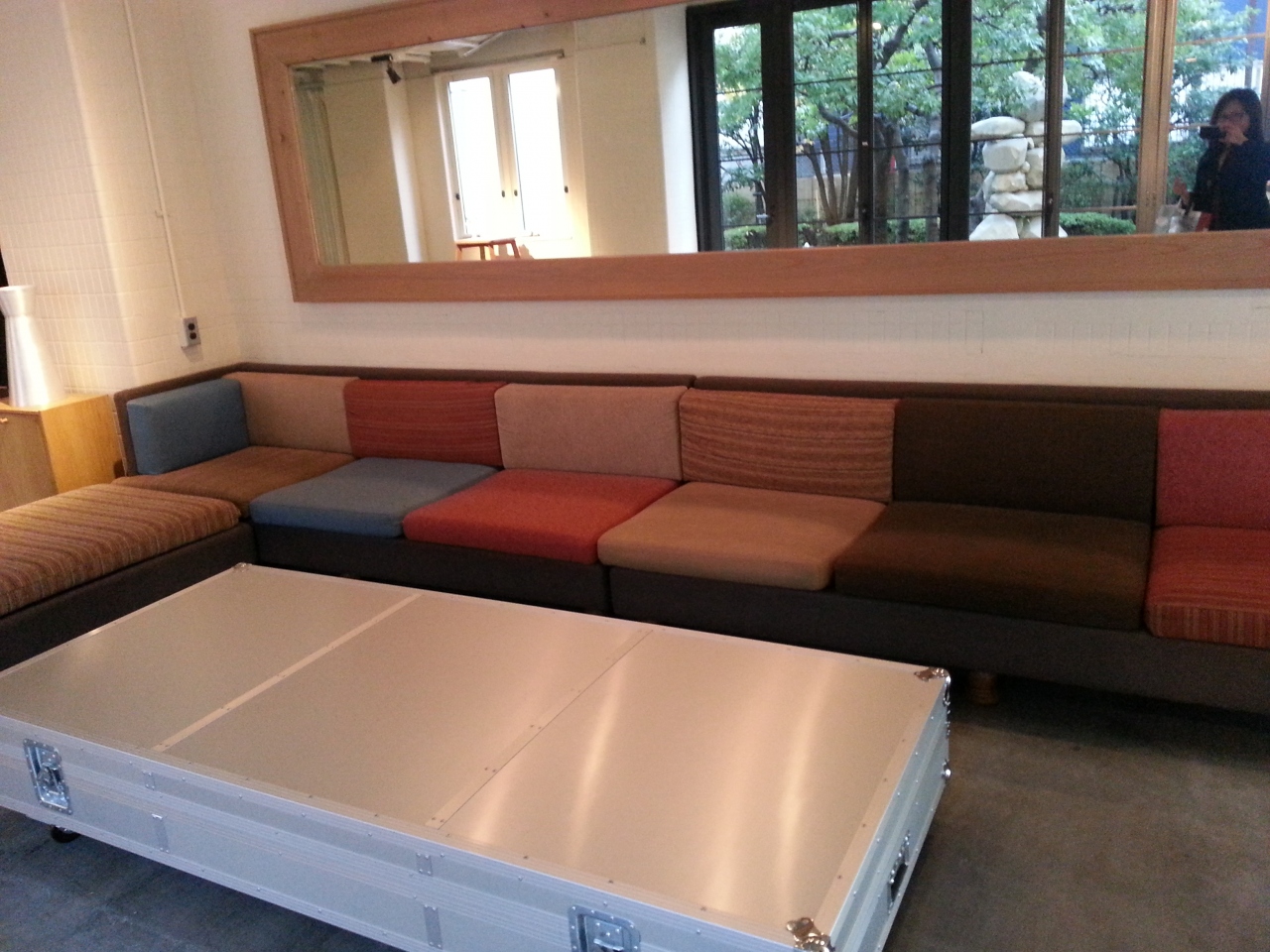 エントランス入ると、ギャラリーがあって、ロビーにはカワイイソファ。
