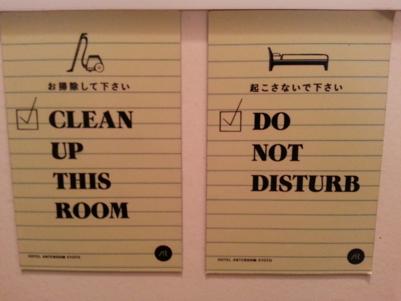 こういうところがいちいちサレオツ、な喫煙所のドアノブ、お部屋のサイン。