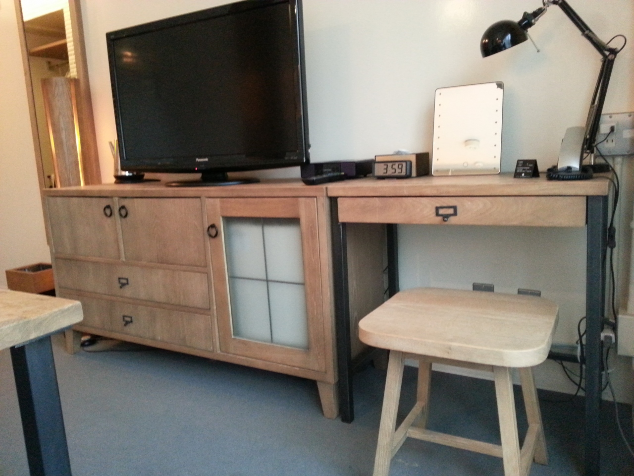 の、わりにちゃんと加湿機能付き空気清浄器はあるし、鏡はワザありだし、ACはいっぱいあるしで使い勝手よし!