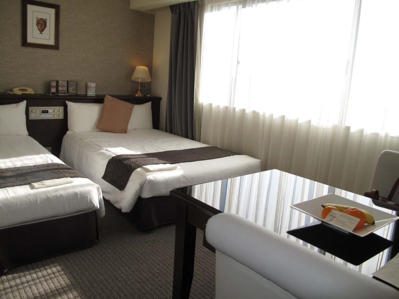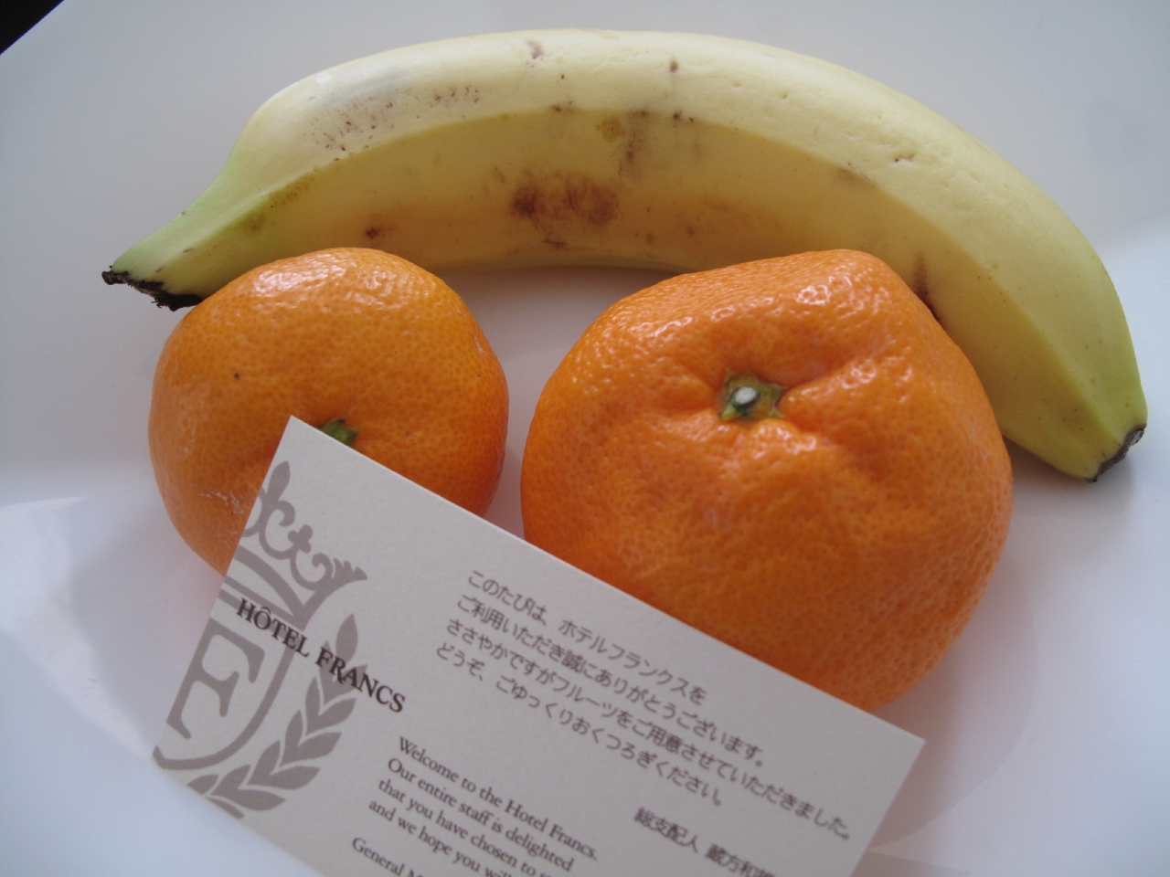 部屋に入ったら、ウエルカムフルーツなど客へのもてなしもしっかりとしている。