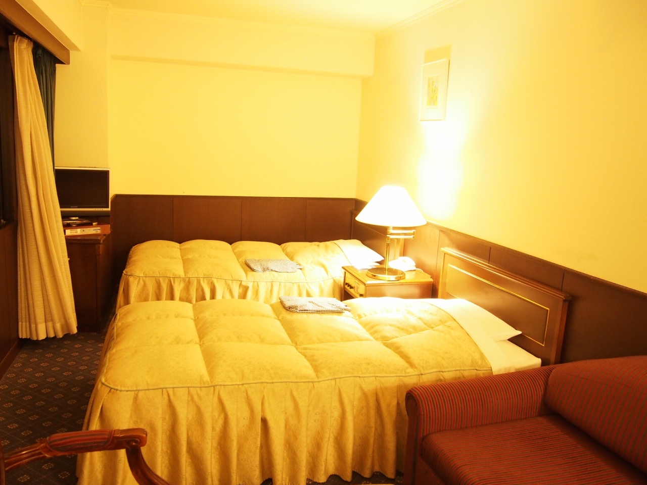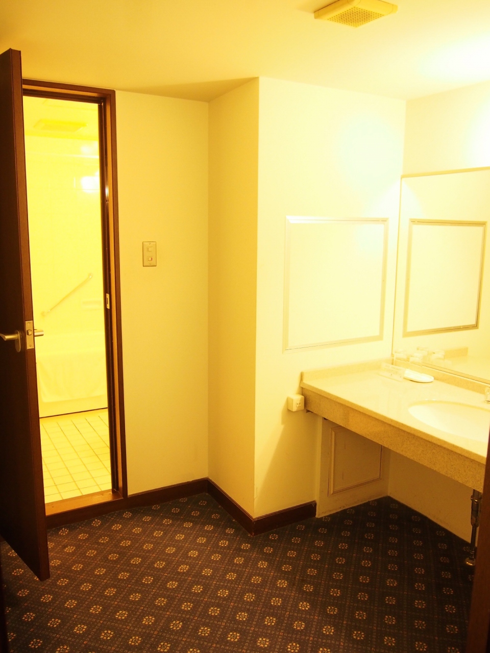 お部屋はビジネスホテルのような感じですが、お風呂、洗面所が大きく広々としています。ただ、少し古い感じが否めません。