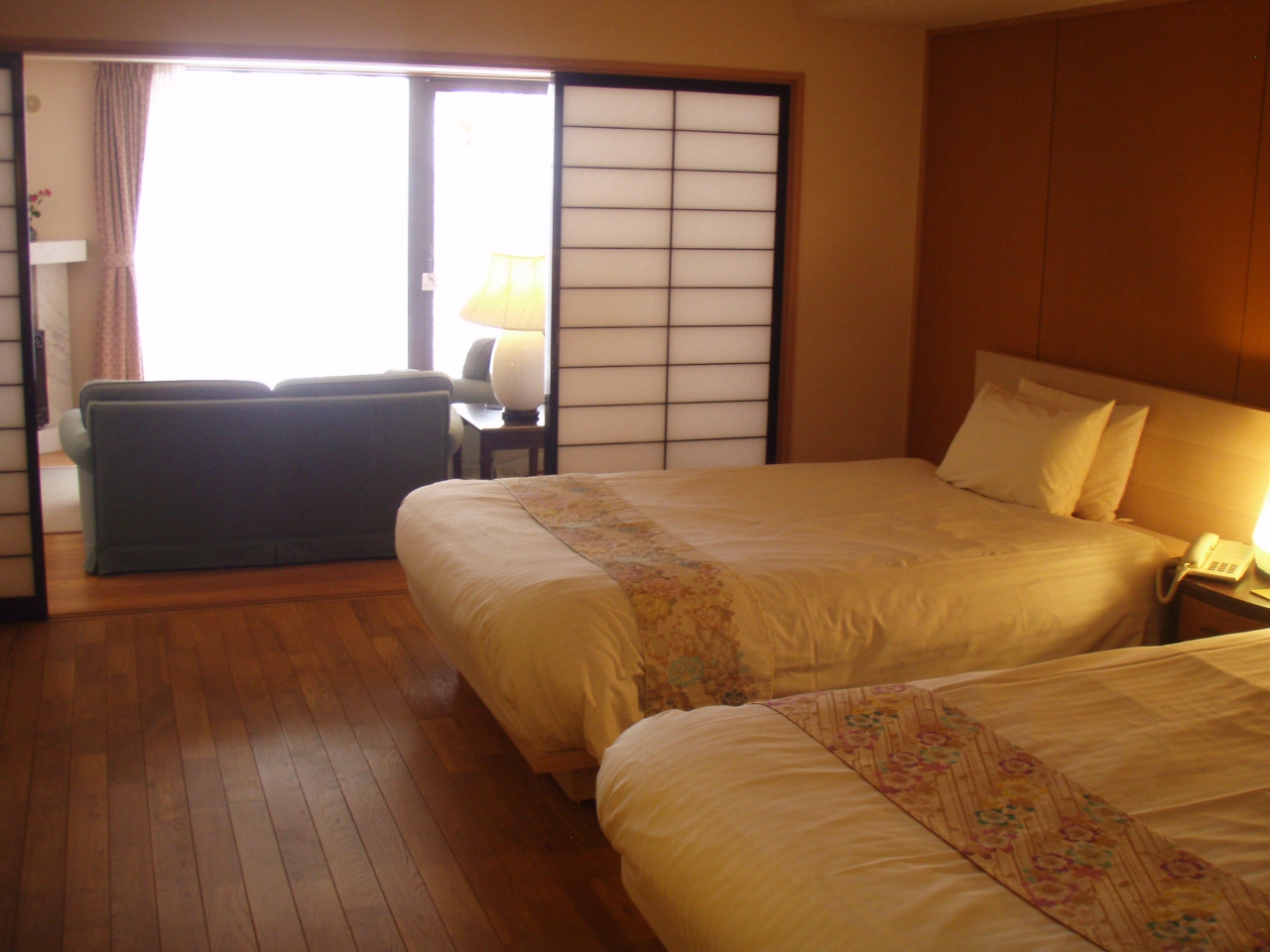 ベッドルームにシッティングスペースが付いた広いお部屋で