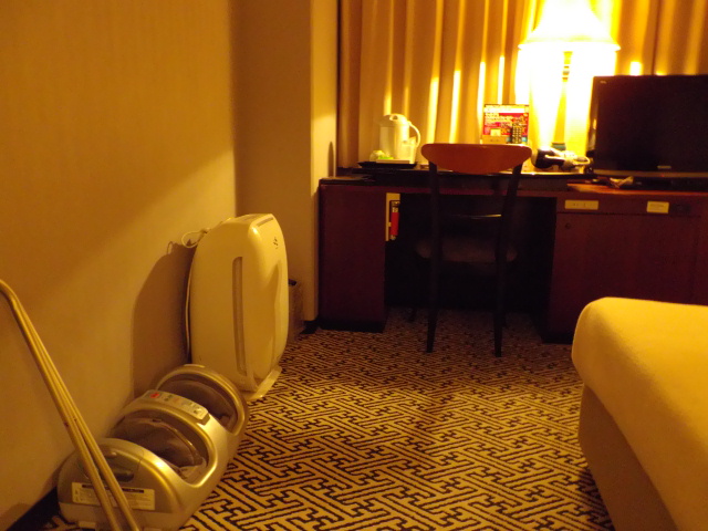 部屋はシングルでは普通かなという広さでしたが、女性専用ということもあり、加湿器とフットマサージャーが置いてありました。ところが、コンセントが一か所しかなくせっかくおいてあるのに両方一緒に使うことができなくて残念でした。