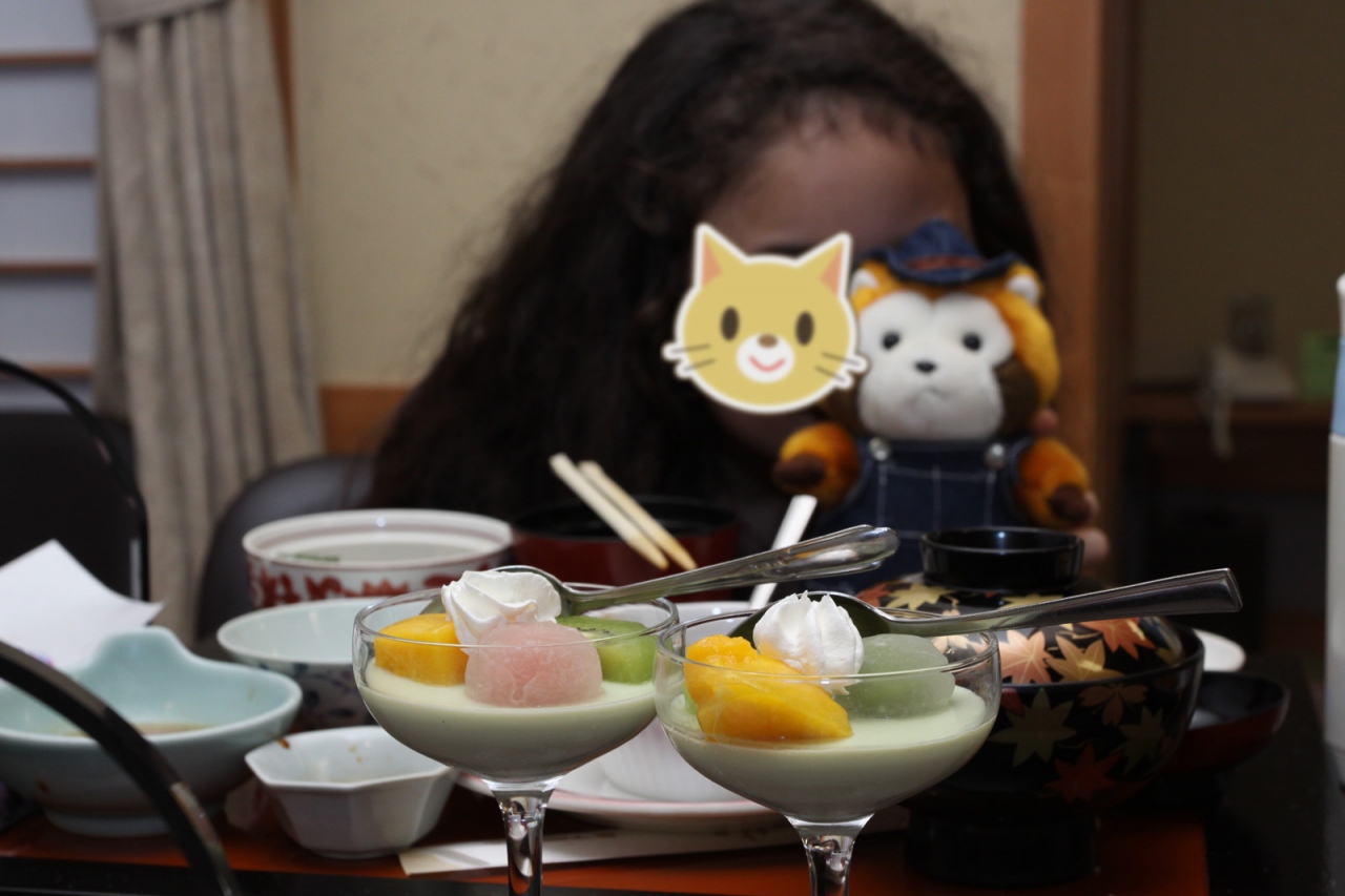 椅子コタツでの夕食は、おもしろい仲居さんのおかげで大変楽しく食べれました。デザートもなかなか斬新でした。