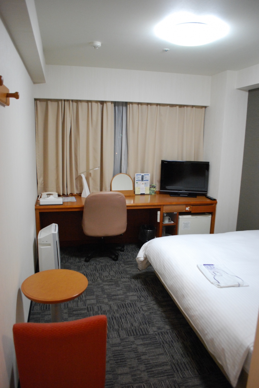 駅から市電に乗る必要がありアクセス面ではやや不便、市電の停留所からはすぐそばの角地に立っている。チェックインは、支払いがオンライン化されていたが、メンバーでないを押してもメンバー番号を押してくださいなどとらぶった(選んだ機械の不備のためであった)。部屋自体は、天井も高く全体的にゆったりとしていてくつろぎやすい。予約した時のプランには朝食が含まれていなかったが、朝食のチケット(1050円)を買って食べてみたら氷見うどん、昆布締、ホタルイカの黒作りなど富山の特産が一通り味わうことができ、時間の余裕がある限り利用することを勧めたい。富山は、3月の新幹線開通などを当て込んで、昨年夏あたりからホテルの値段が強気になっているが、プラン次第では、選択肢に入れてよいホテルの一つであるといえよう。