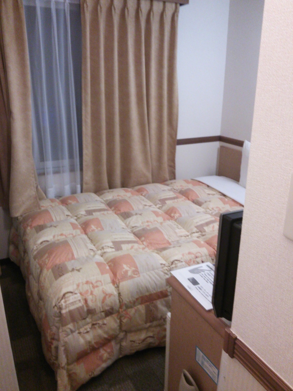 当日宿泊したのはシングルAという部屋の広さが多少狭い代わりに宿泊料金が多少安いという内容です。いざ宿泊したところ、ベットはダブルサイズのベットを使用していたものの、やはり狭さは感じてしまい、例えばクローゼットやデスクの椅子の設備はありませんでした。
