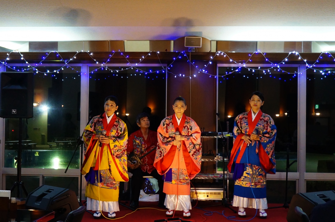夕食時に具志堅ファミリーの沖縄歌謡ショーがあります。