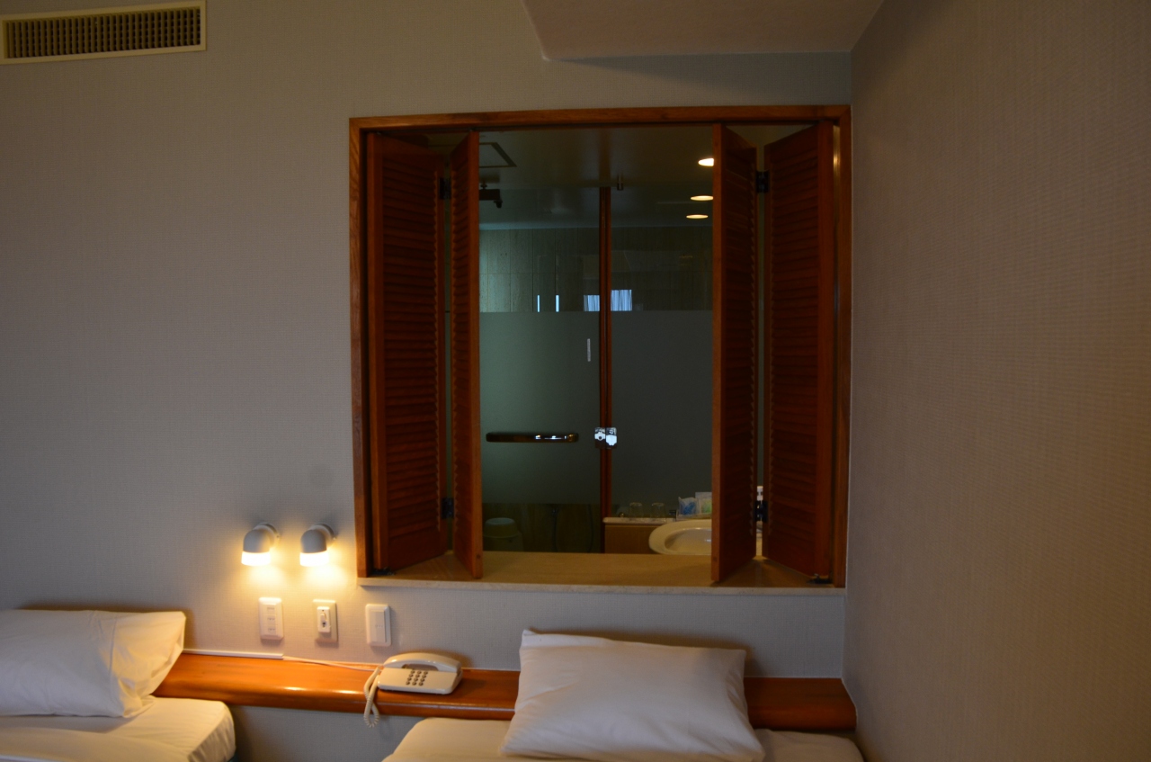 リゾートアイランドの名前のわりに周りには何にもなくて孤立したホテルといった感じがしました。部屋は普通のツインでできてまだ1年足らずなので部屋はきれいですが、wi-hiの設備もありませんでした。オーシャンビューの展望風呂があって露天のジャグジーで気持ちよく入浴できました。