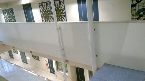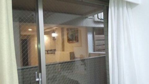 おかげで、部屋によっては窓の外にすぐ隣の建物の廊下(別部屋入口)があるので、カーテンは開けられない。