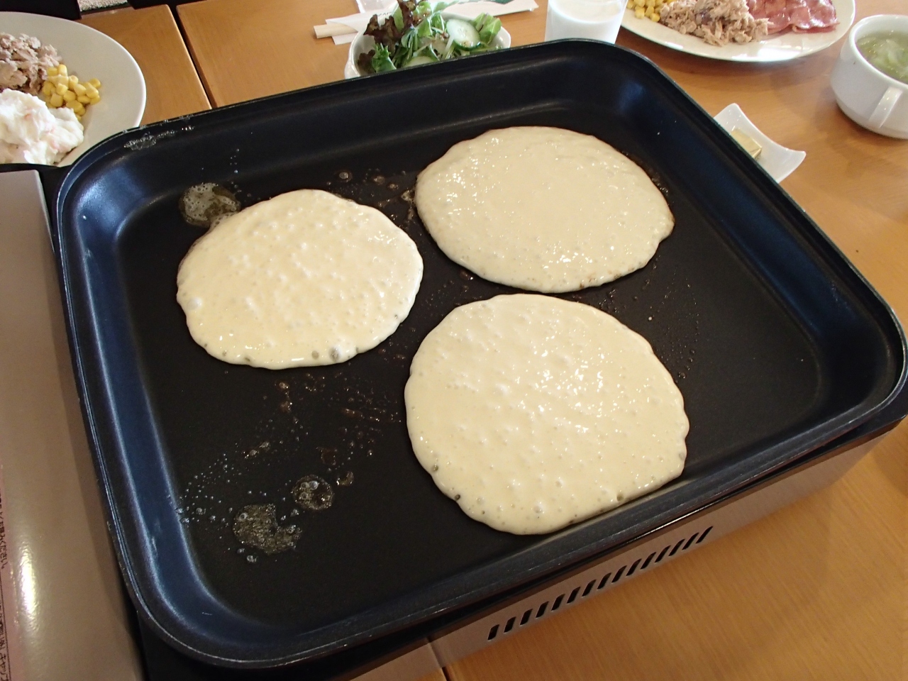 朝食は「パンケーキを自分で焼いて食べる」というのがこのホテルの名物ともなっていて、皆でワイワイ食べたのも楽しかったです。