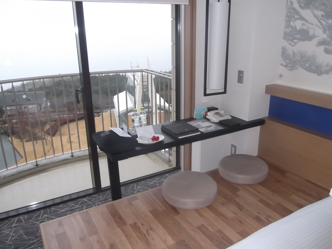 海岸沿いの少し小高い丘の上にあります。3階に天然温泉があって、ゆったりできました。バスローブとスリッパで行けるので、手軽でした。今、レストランを改装しているらしく、朝食は1階のロビーラウンジでいただきました。和食も洋食もあり堪能しました。