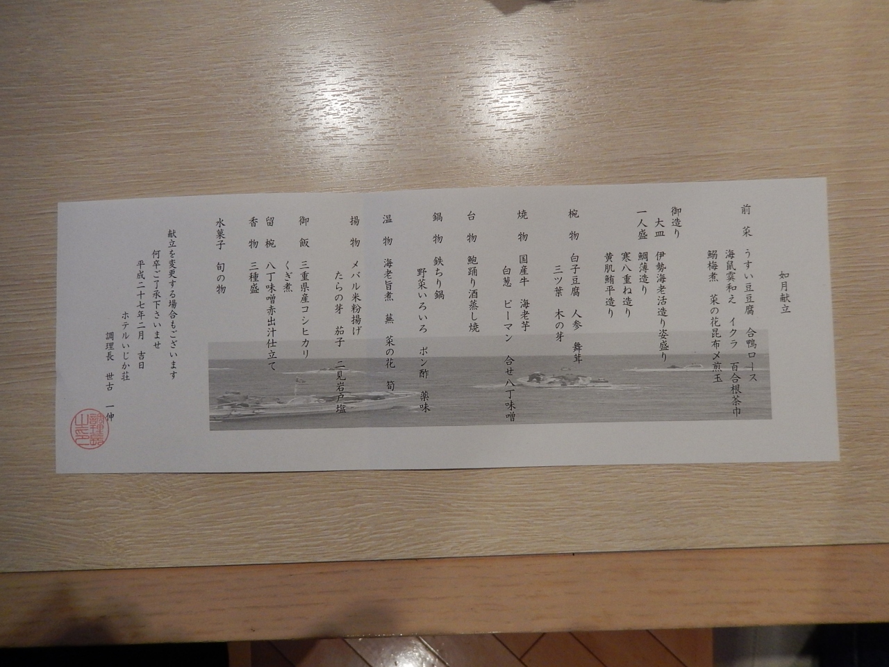 伊勢えびとアワビ(夕食)のプランで、15,000円でした。伊勢えびの刺身も塩焼きも、アワビの踊り蒸しも、とても美味しかったです。