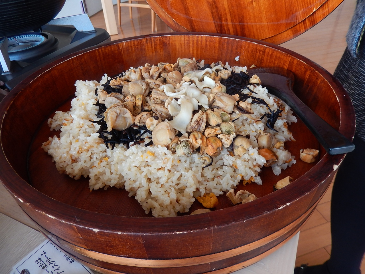 朝食の磯めしも、貝がいっぱいで、ウニも入っていて、おいしかったです。