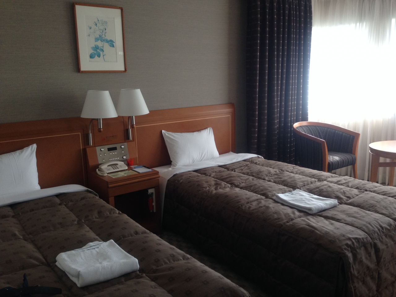 21階の禁煙フロアーのツインルームでした。セミダブルベッドが2台とテーブルと椅子がある、落ち着いた感じの清潔な部屋でした。