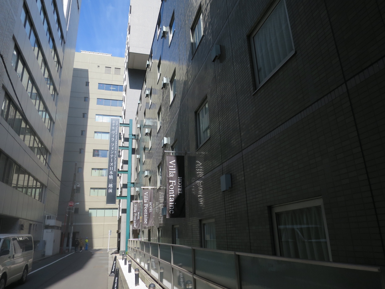 かつての水路跡の細長い土地上に建てられたのでホテル棟は南北に細長く伸びている。端っこの客室だとエレベーターからやや距離がある。窓外は壁という最悪の事態は免れているが、小さな通りをはさんで向かいのビルが見えるだけで日本橋にいるという実感は風景からは感じられません。しかしヴィラフォンテーヌブランドだけに客室は洗練されていてリラックスできます。