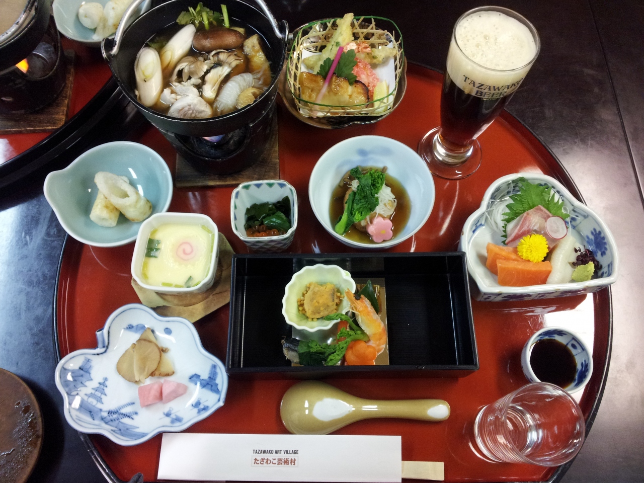 夕食は部屋食で、内容はお刺身、天ぷら、きりたんぽ鍋など満足のいくものでした。