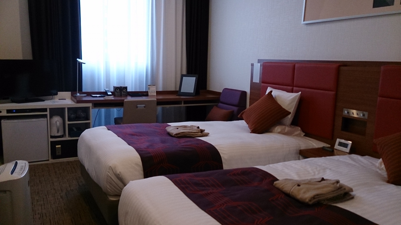 ツインルームはスーツケースを広げるとちょっと足場がなくなってしまいますが、とにかくキレイなので文句はありません。