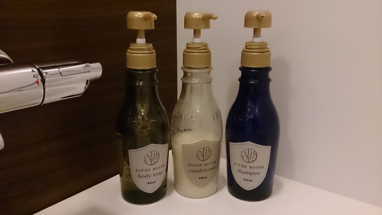 女性には、フロントで化粧水や乳液など(1回使い切りタイプ)のアメニティグッズが用意されています。