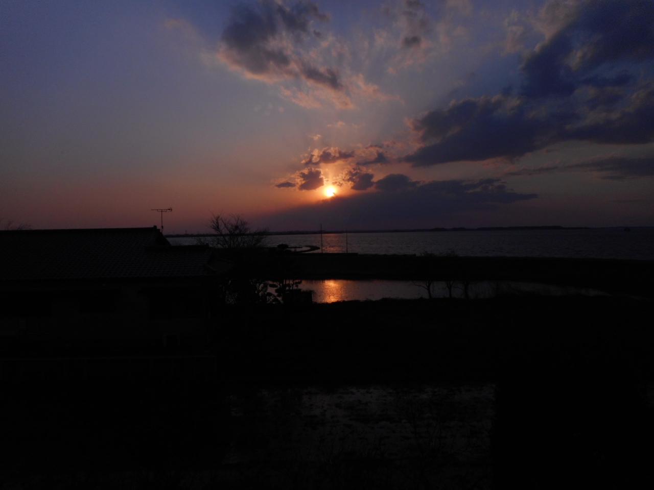 霞ヶ浦が見渡せる2階の和室からの夕日の眺めは最高です。