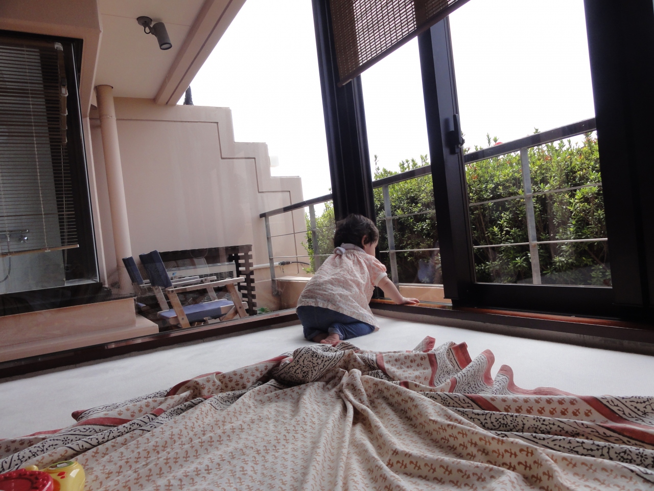 部屋のテラス付近には寝そべれるベットのようなマットのようなスペースがあり、6カ月児がゴロゴロするには最高のスペースでした。