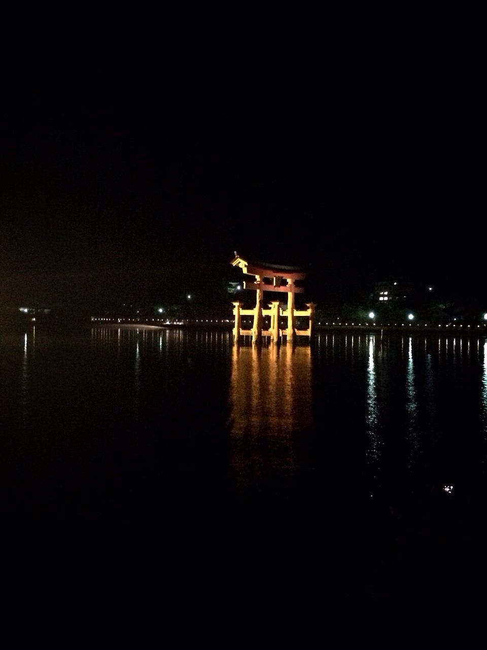 あと、一押しなのがナイトクルーズです。ライトアップした厳島神社の鳥居まで船で行けます! お昼には見えない神秘さがあります。これはほんまに行ってる良かったと思いました。